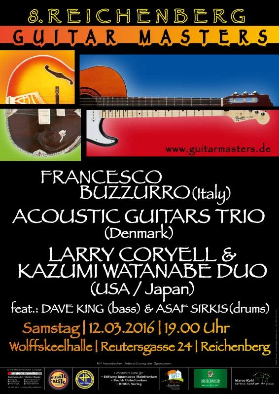 Announcement: Very happy to be playing soon (12.03) with these two guitar legends in Germany! Larry Coryell & Kazumi Watanabe feat. Dave King on bass & myself on drums February 26, 2016 / Asaf Sirkis Don`t miss it! View fullsize Comment 1 Likes